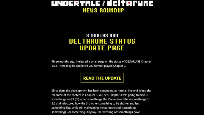 Toby Fox has not yet revealed the release date for Deltarune Chapter 3. Writing on his blog spotted by.